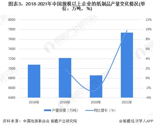 2020年受新冠疫情的影響,全國規(guī)模以上企業(yè)紙制品產(chǎn)量同比下降2.4%;2021年,全國規(guī)模以上企業(yè)紙制品產(chǎn)量達到7739萬噸左右,同比增長9.8%,超過2019年全年水平。