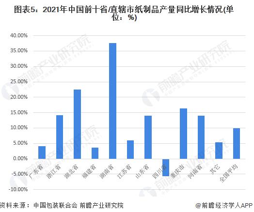 從在2021年,國內(nèi)前10省/直轄市紙制品產(chǎn)量增速來看,除了四川省,其他9省均為正增長,其中湖南省的增幅******,超過30%。